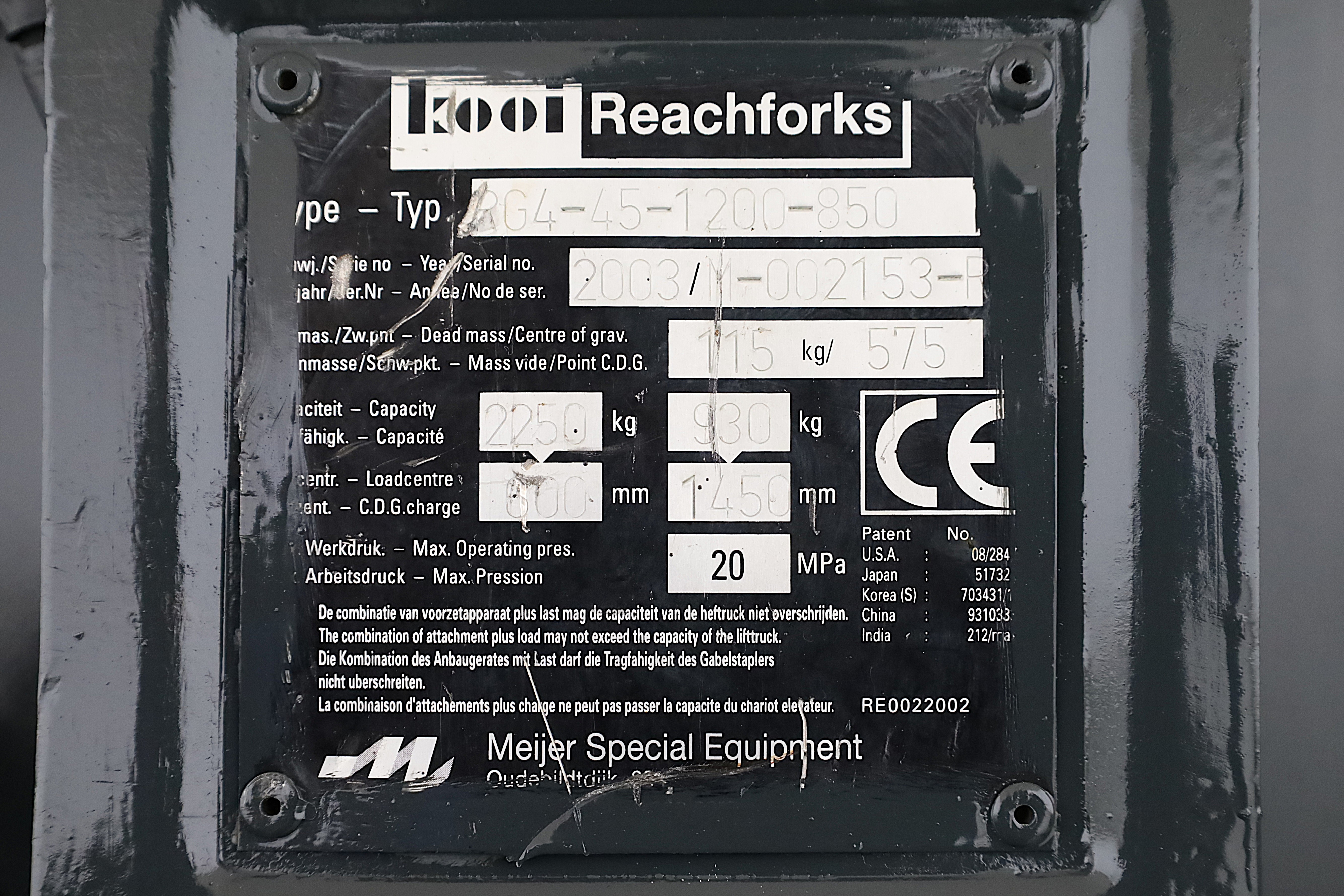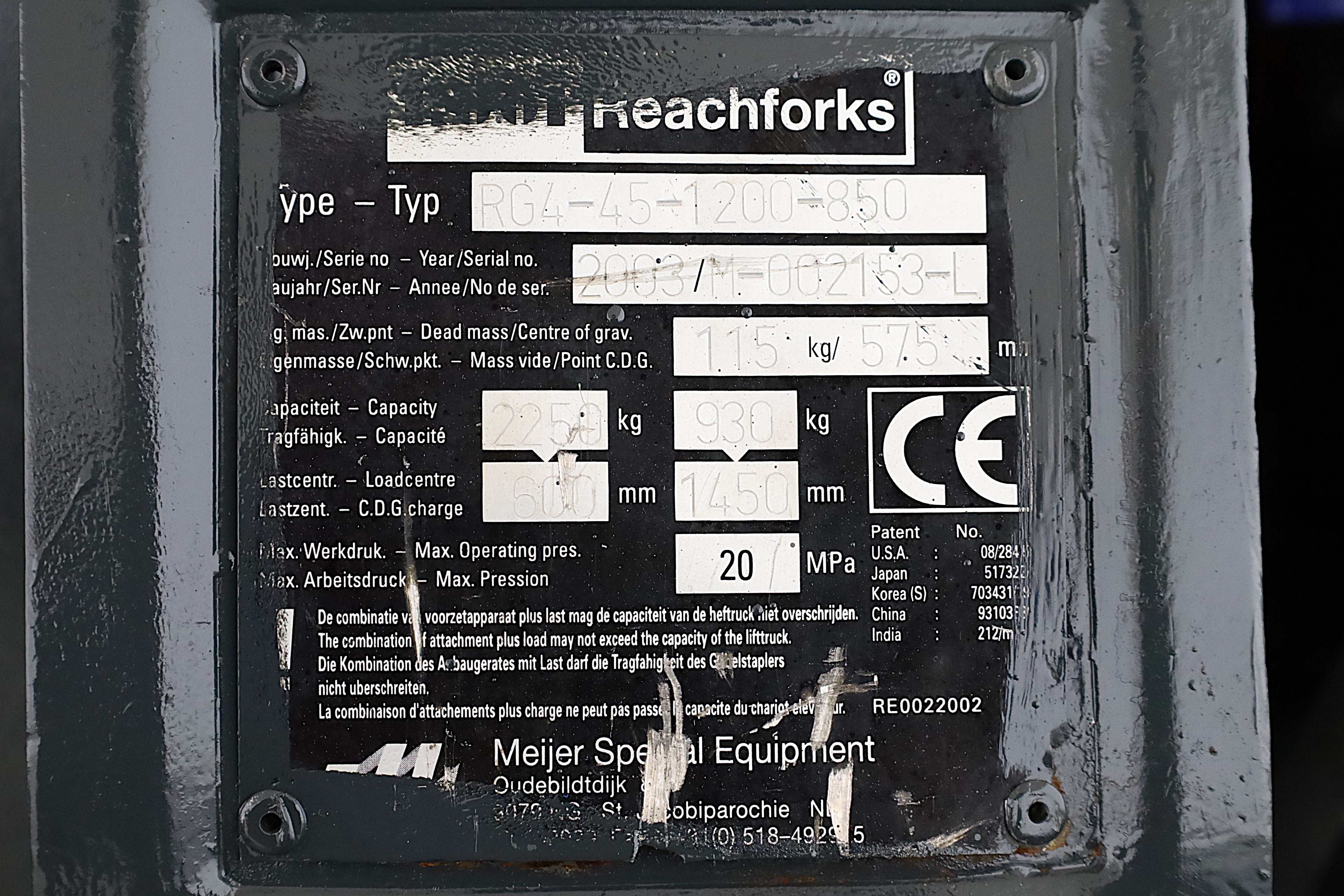 | Attachment types | Fork positioner with reach forks |